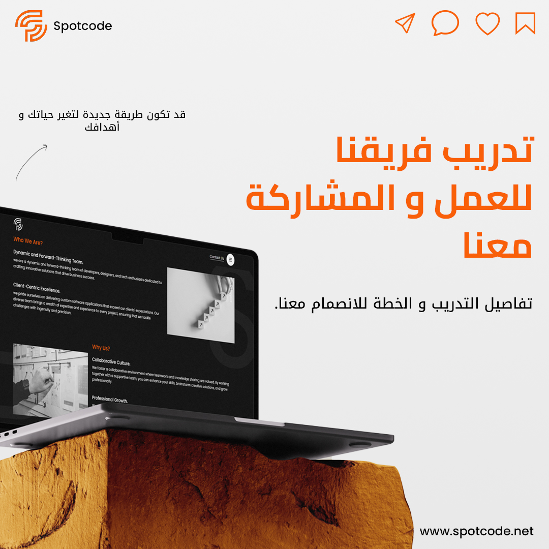 بصفتي مسؤولًا عن منصات التواصل الاجتماعي وواضع الخطط التسويقية للفريق، سأتحدث اليوم عن الإعلان الرسمي لافتتاح الشركة، وتحديد خطة تدريب متكاملة تهدف إلى رسم الصورة كاملة في أذهان كل من يرغب في الانضمام إلى الفريق، والتدرب، والعمل معنا.