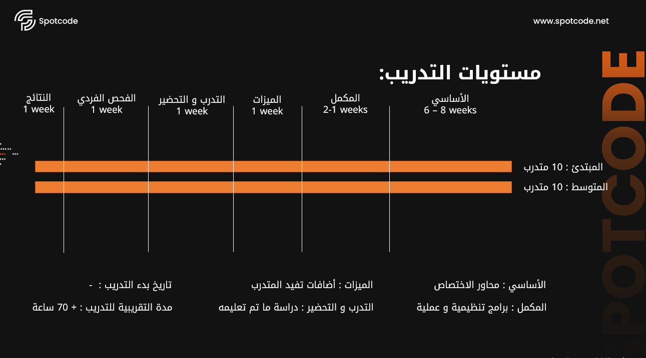 - المستوى الثاني (المتوسط) – يتسع لحوالي 10 متدربين.